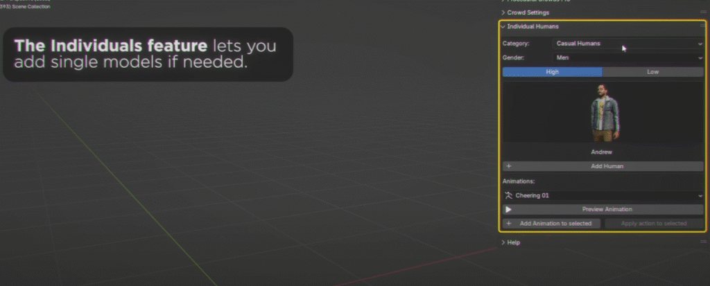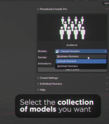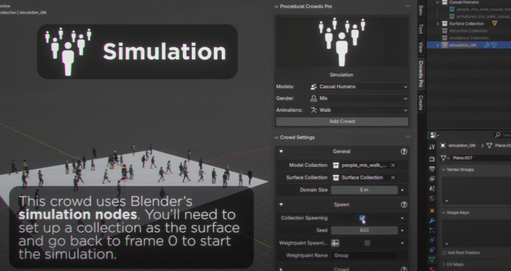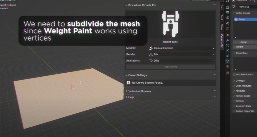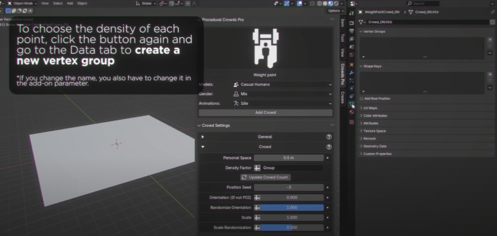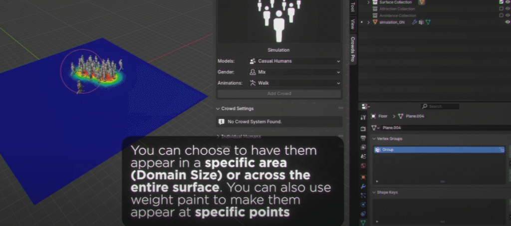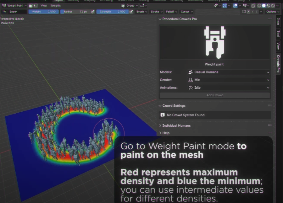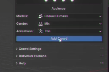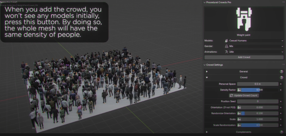 When you add the crowd, you won’t see any models initially, press this button. By doing so, the whole mesh will have the same density of people.