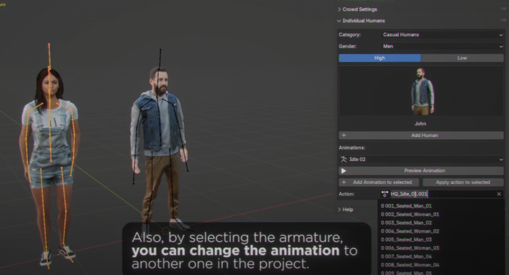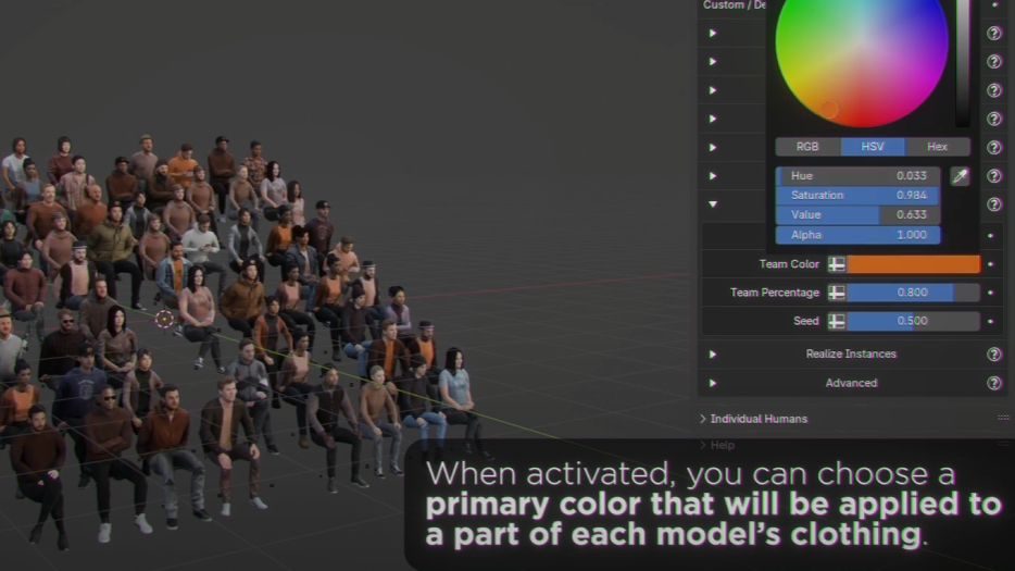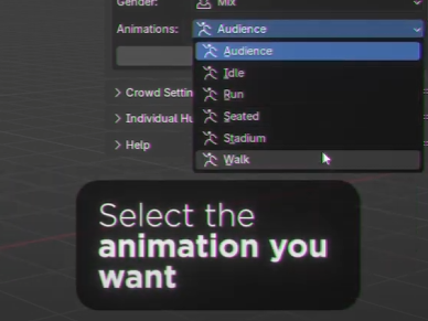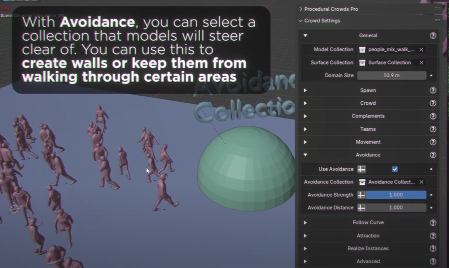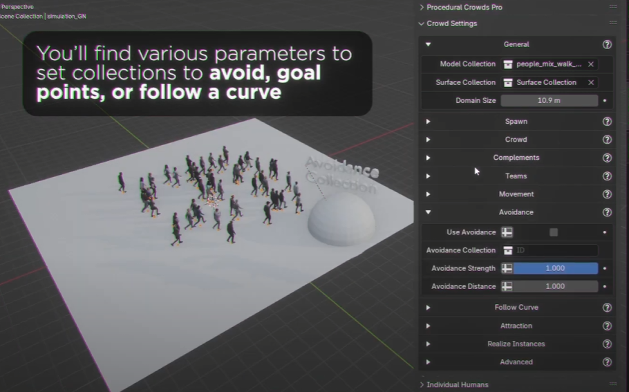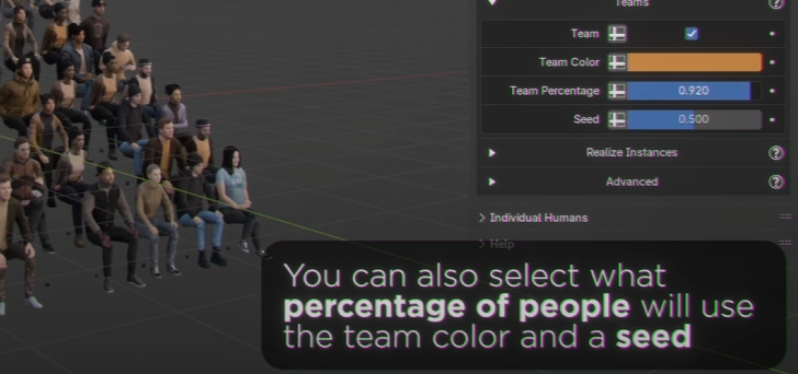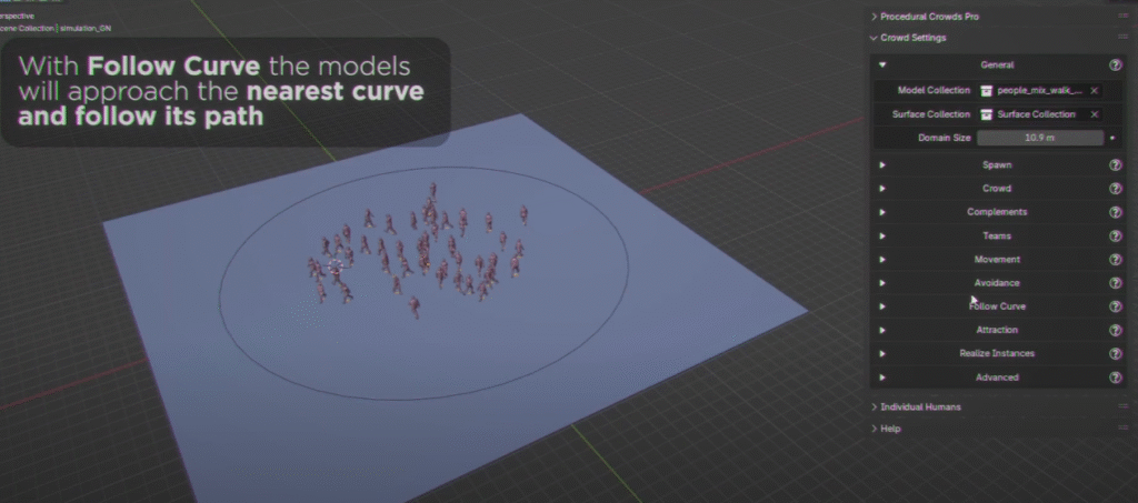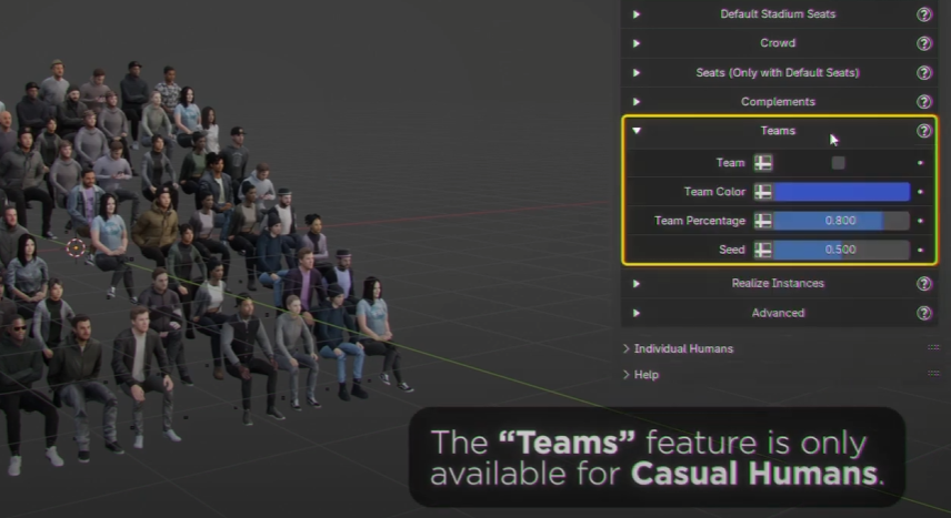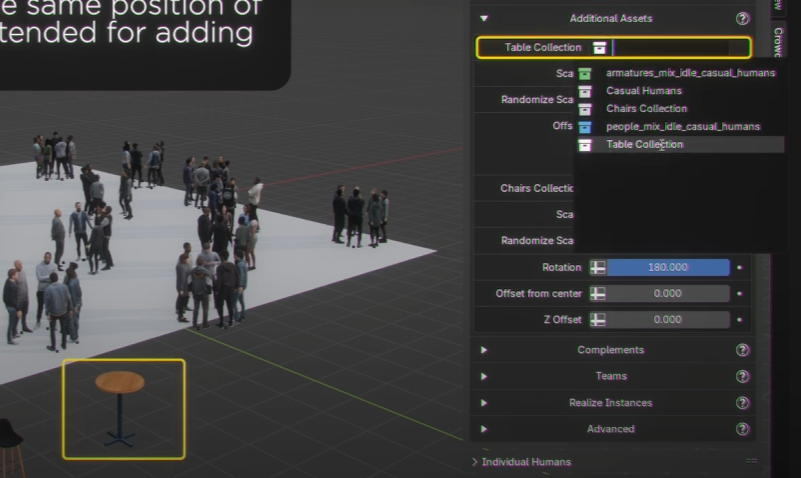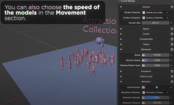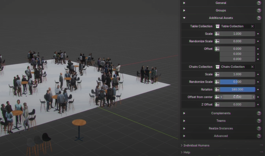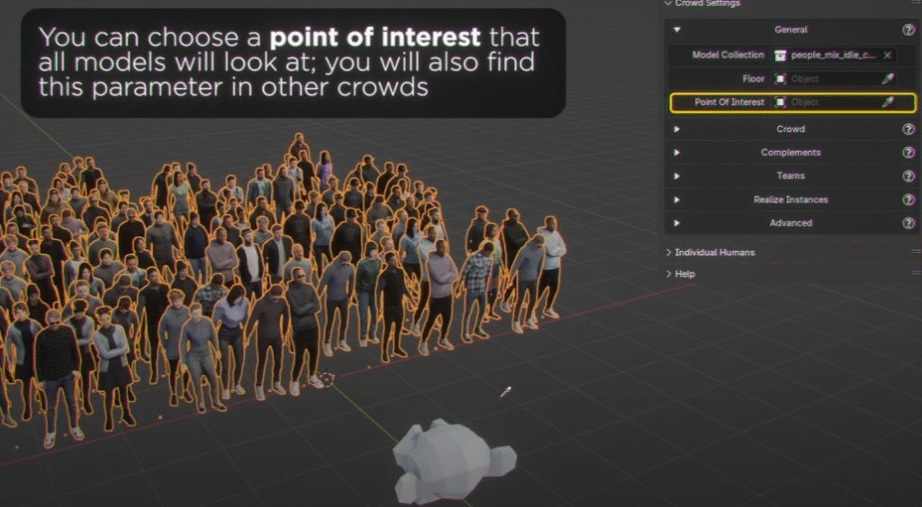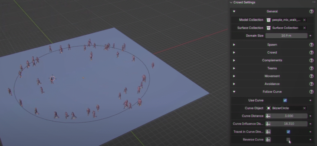 By activating the “Random Complements” parameter, these parts will be instantiated randomly, adding more variety to the crowd without needing to add many models.
