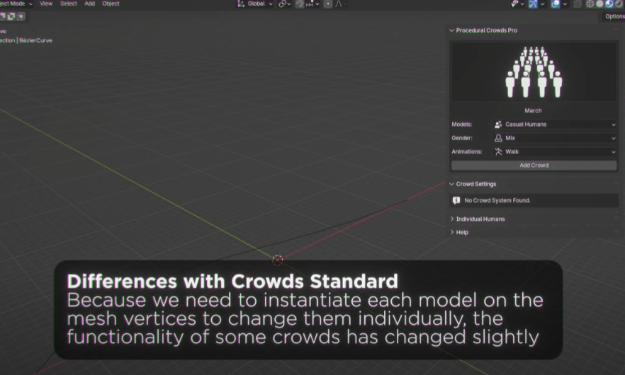 Because we need to instantiate each model on the mesh vertices to change them individually, the functionality of some crowds has changed slightly.