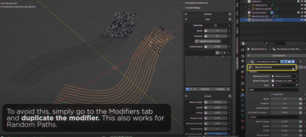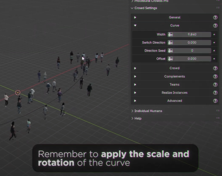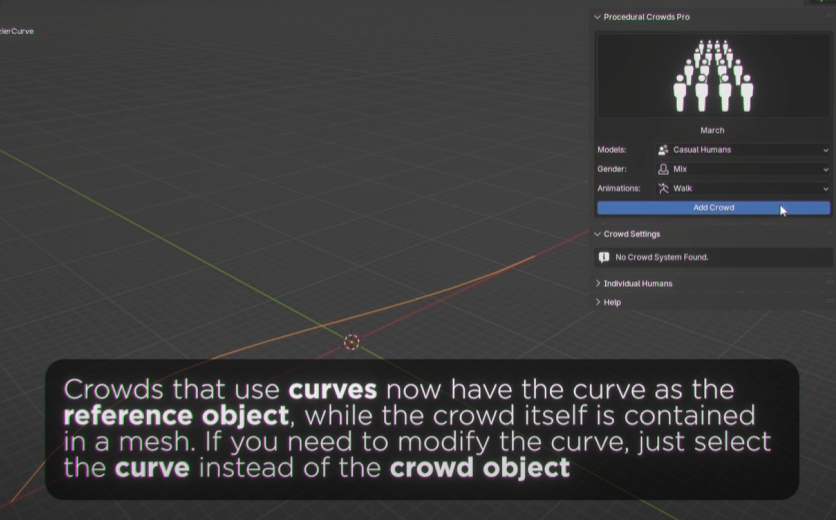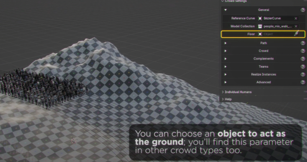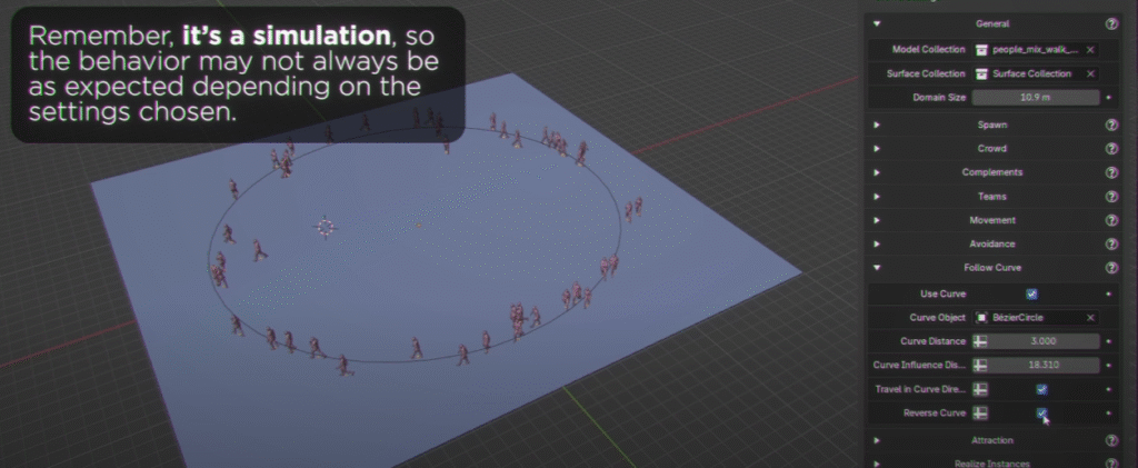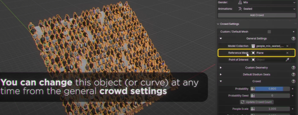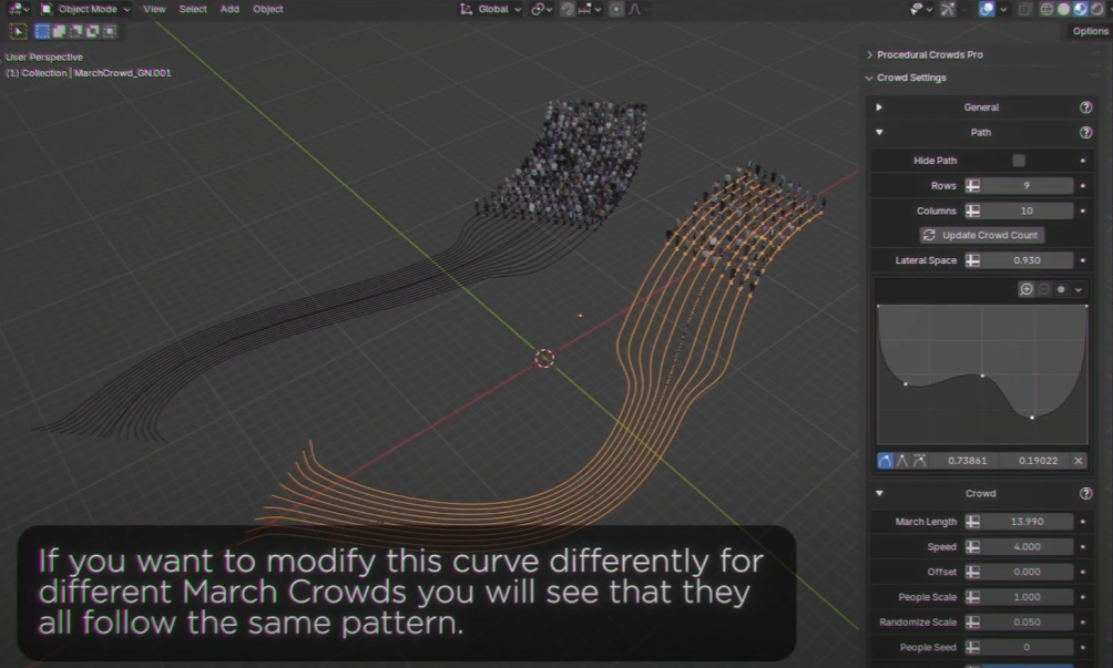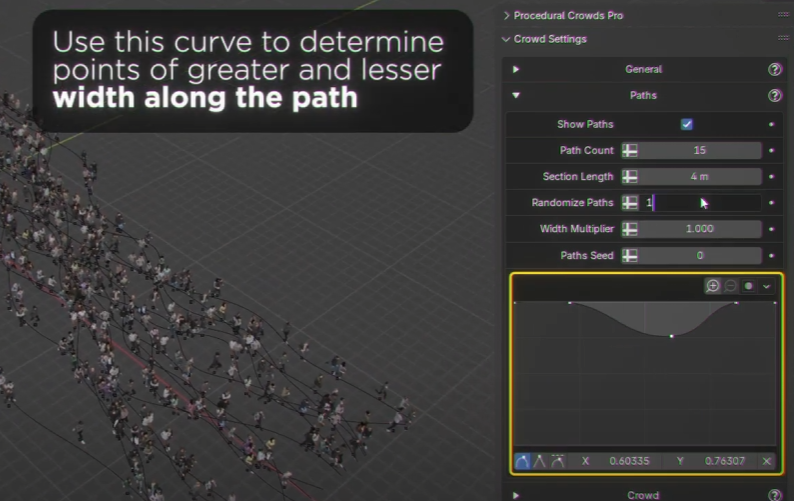 このオブジェクト(またはカーブ)は、いつでも「Crowd Settings(群衆設定)」のGeneral(全般)タブから変更できますよ。