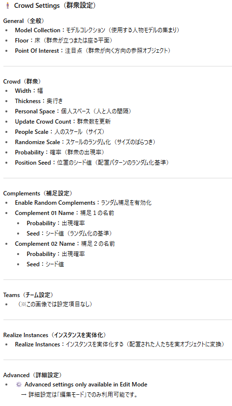 メッシュ上のポイントごとに**人の密度(Density)**を調整できます👥✨