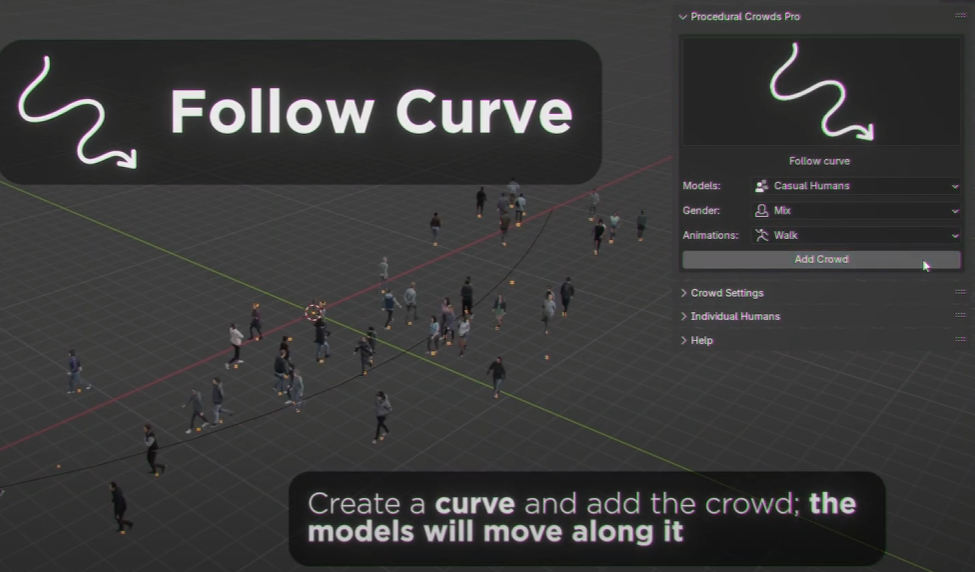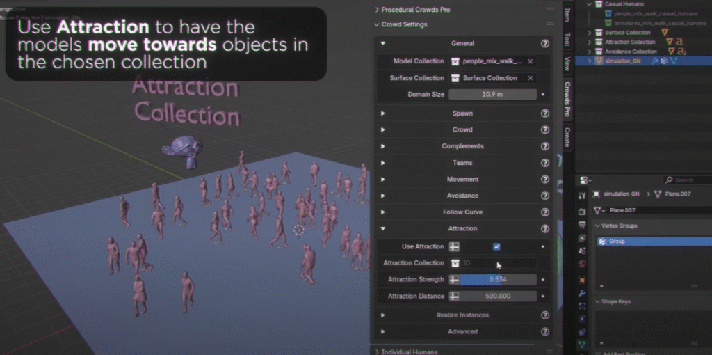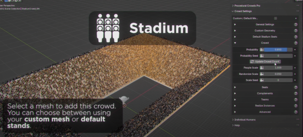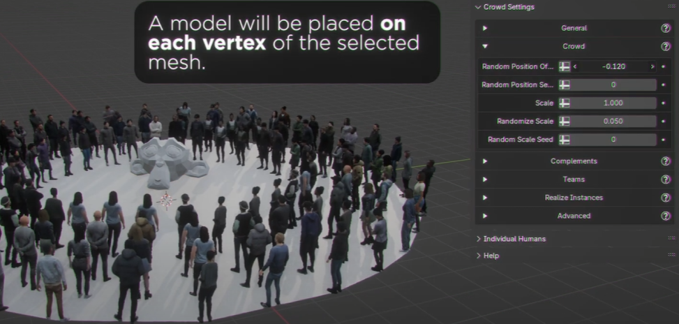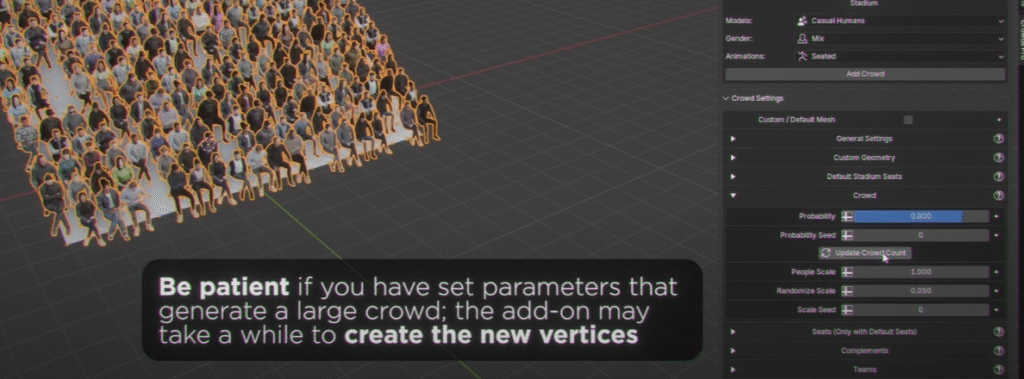 Be patient if you have set parameters that generate a large crowd; the add-on may take a while to create the new vertices.