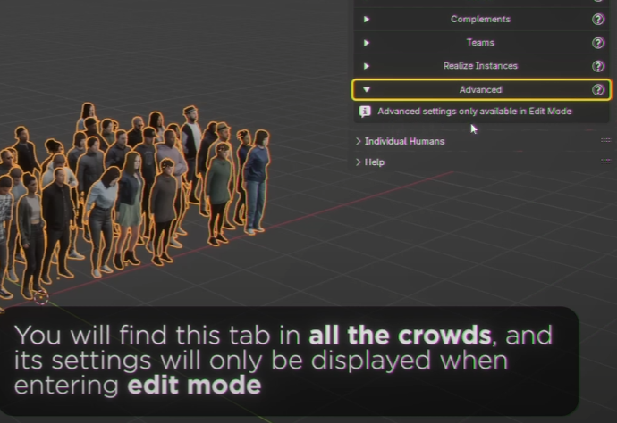 You will find this tab in all the crowds, and its settings will only be displayed when entering edit mode.