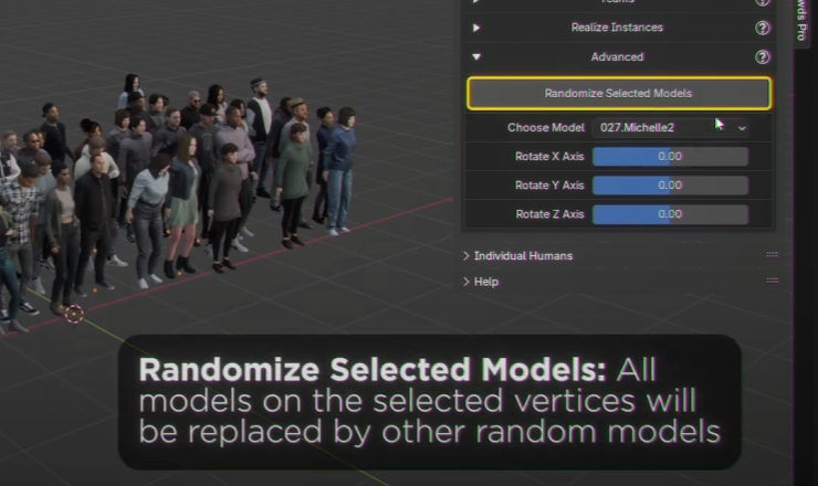 Randomize Selected Models: All models on the selected vertices will be replaced by other random models.